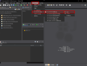 画面上部のメニューから「ウィンドウ」→「パースペクティブ」→「パースペクティブを開く」→「Java」