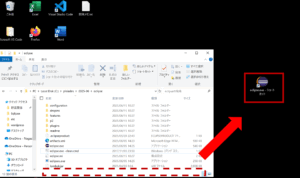 エクスプローラーのダウンロードを開くと、今ネットからダウンロードしたpleiades-20xx-xx-xxxxxxxxxx.exeというフォルダがあると思いますのでこのフォルダーをダブルクリックし、解凍します。